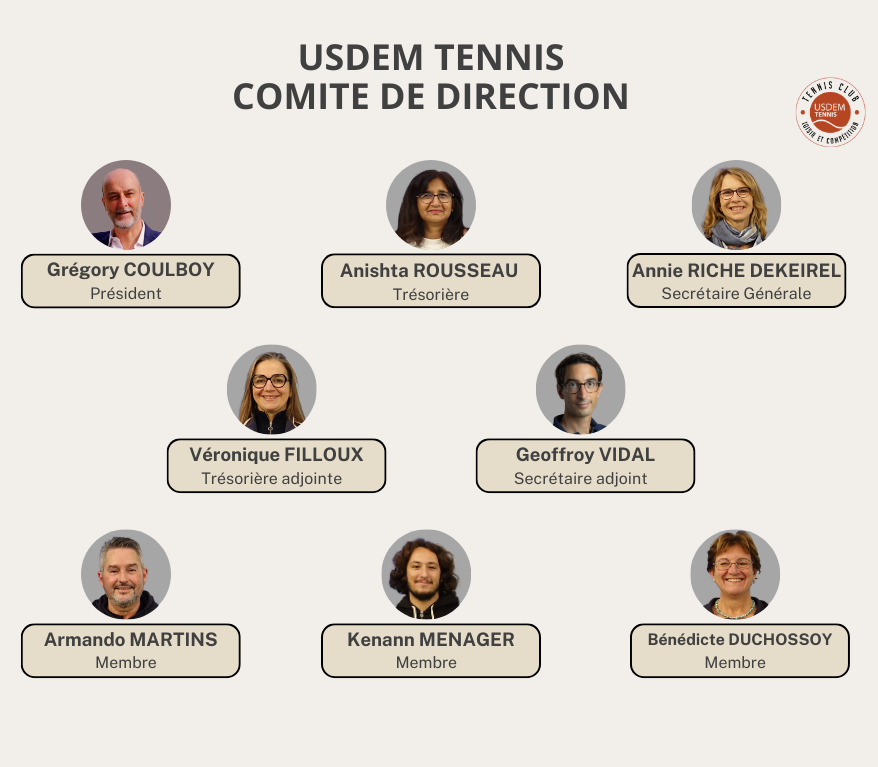 Voici les bénévoles qui constituent le Comité Directeur de l’USDEM Tennis